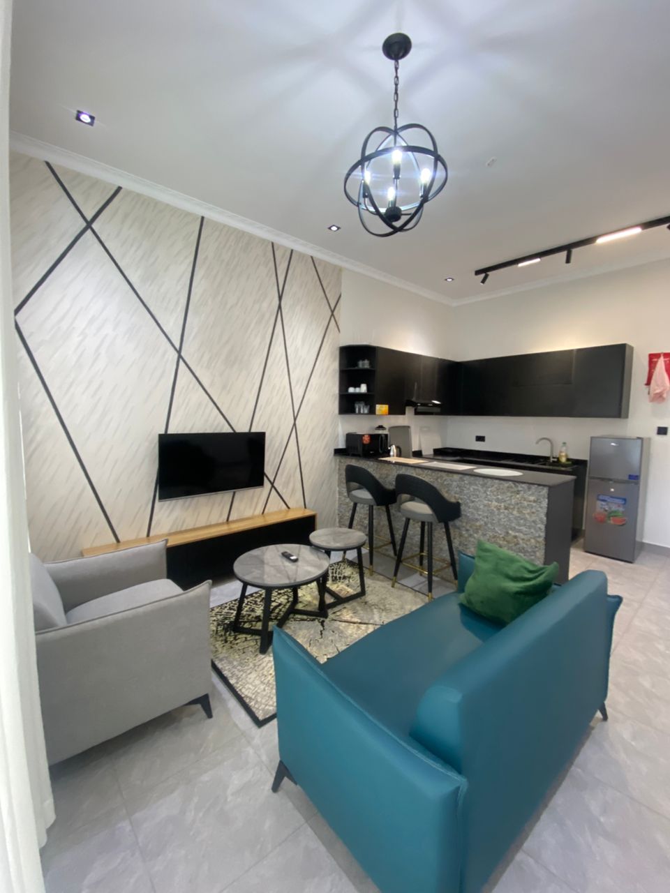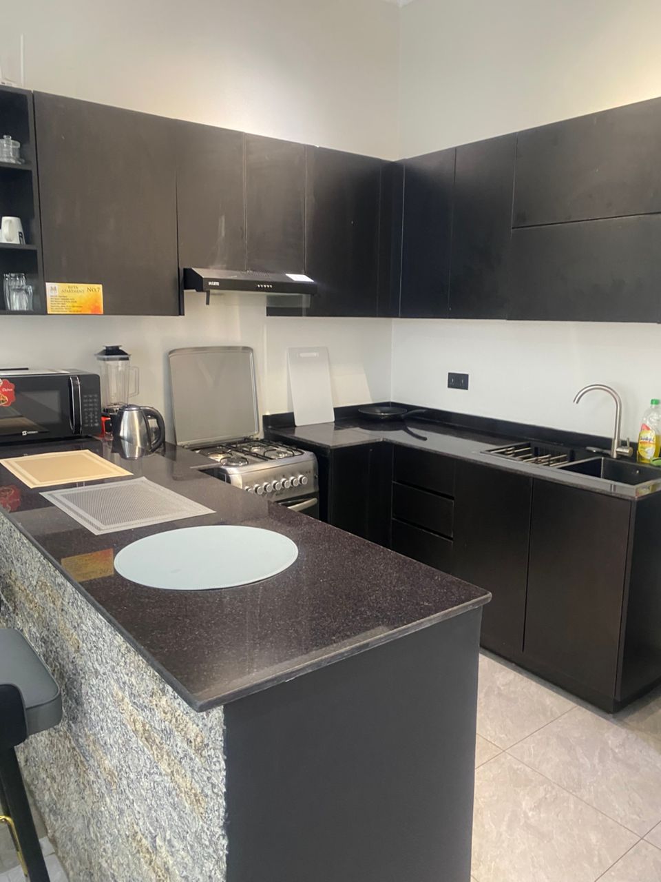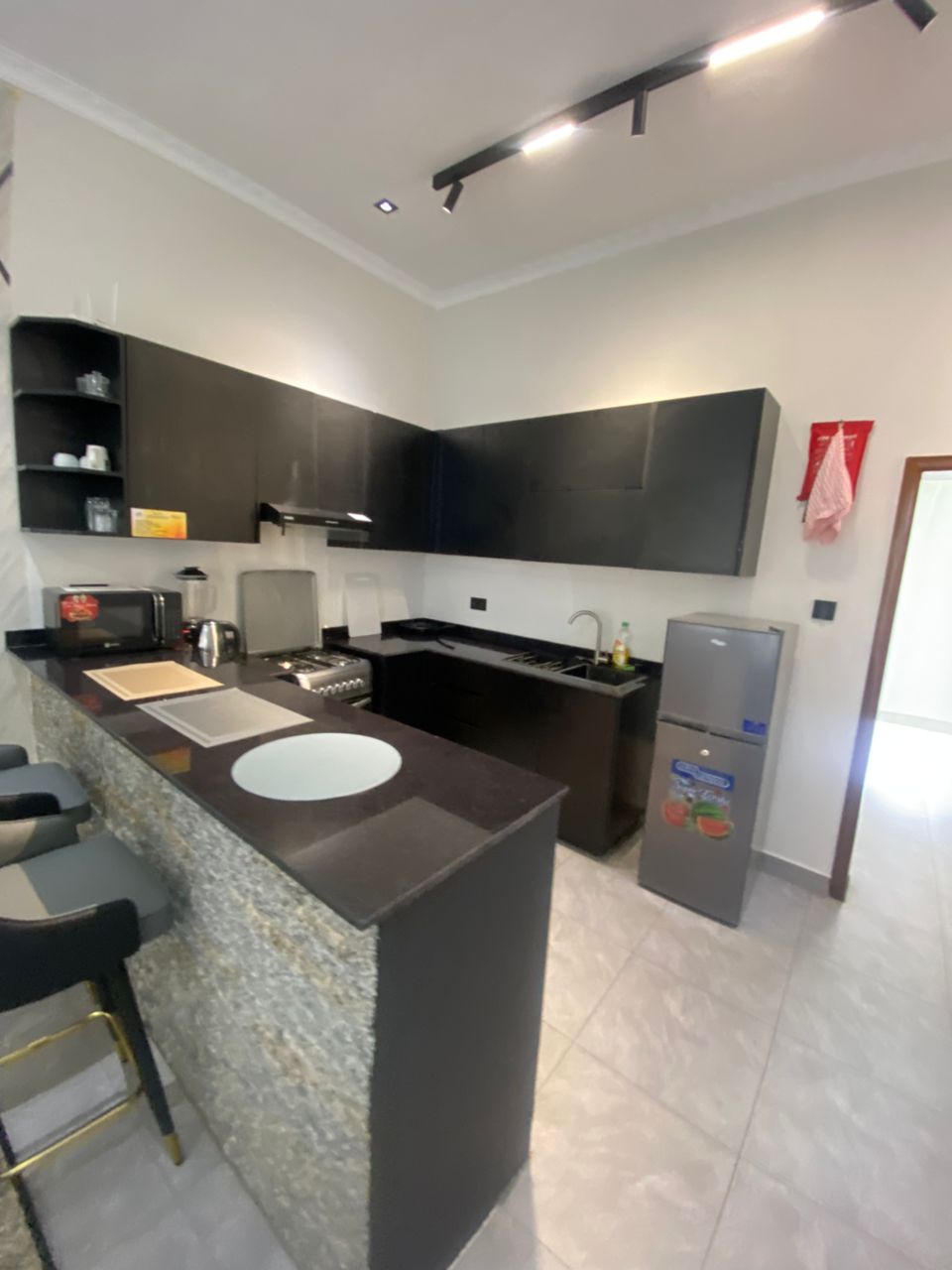 This apartment offers a move-in-ready environment in a well-connected and popular residential area of Kigali.