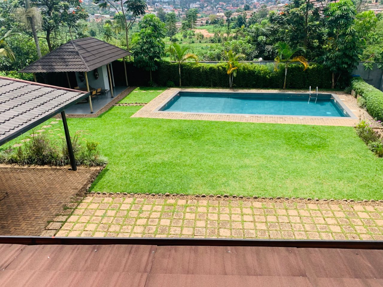 - Nearby green hills and MTN Nyarutarama headquarters.